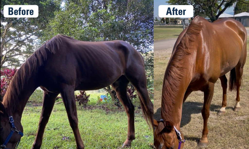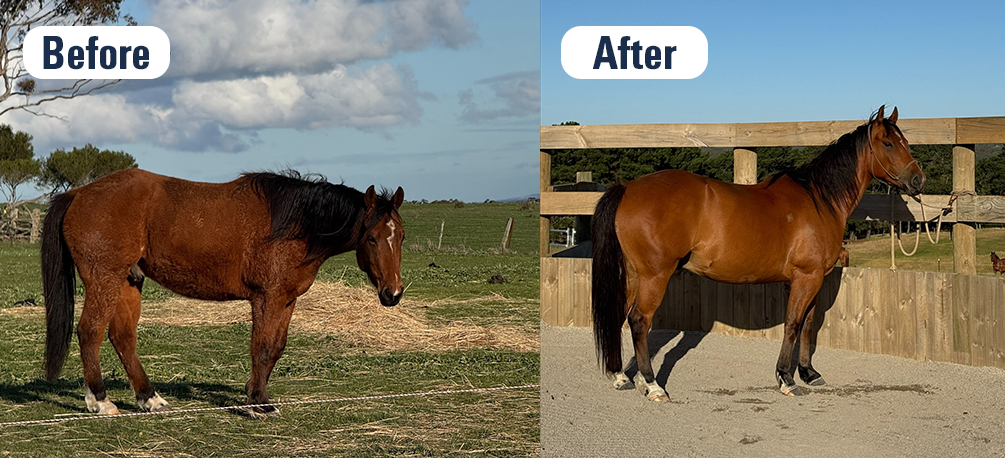 “I wanted to reach out and express my sincere appreciation for your Fibre Safe and Fibre Balancer products. I recently purchased a 3-year-old OTTB who arrived malnourished and in very poor condition. Watching her struggle was difficult—but thanks to your feed solutions, she has completely transformed into a new horse.